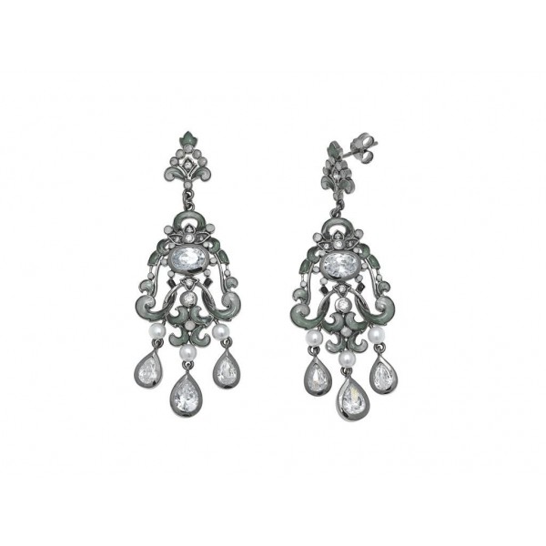 Pendientes de Plata Salvatore Bañados en Rutrenio con Perla y Circonita